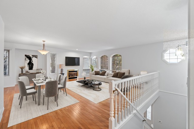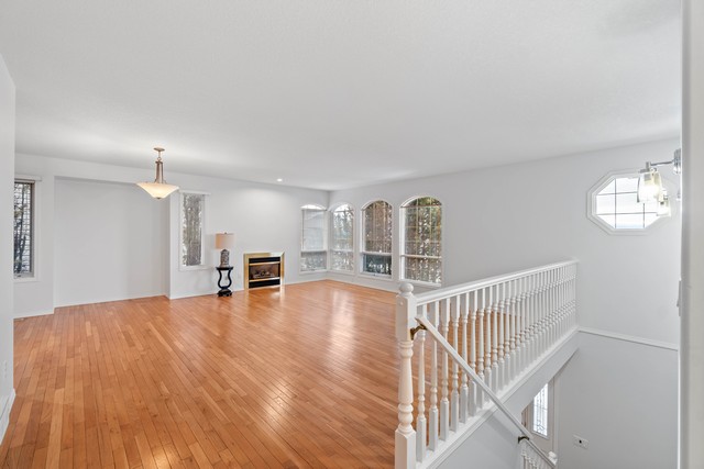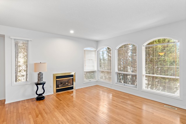 - This home welcomes you with elegant arch windows, hardwood floors throughout the living room and natural gas fireplaces on both levels