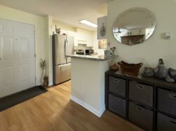 - The bright kitchen comes with new counters with a wider bar for entertaining