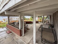 - Patio doors off the dining room open to the back deck overlooking the terraced yard, complete with underground sprinklers for easy maintenance and handy back access to the single garage