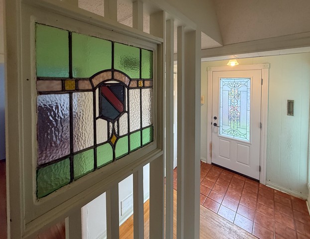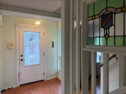 - The lovely foyer and staircase lead to the upper primary suite, featuring stained glass accent, double mirrored closets, a full 4 piece ensuite and patio doors opening to the balcony to enjoy the north valley views