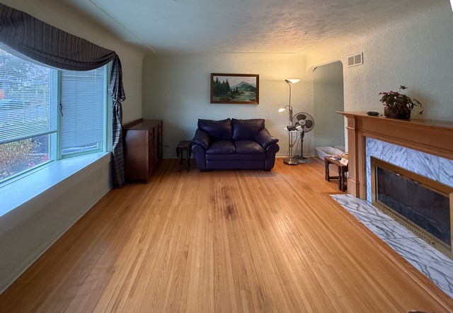 - Enjoy the bright and inviting main floor living room with a window seat in the bay window and a two sided gas fireplace; a cozy feature that also enhances the spacious dining room and open plan kitchen with all appliances included and central air to keep you cool in summer.