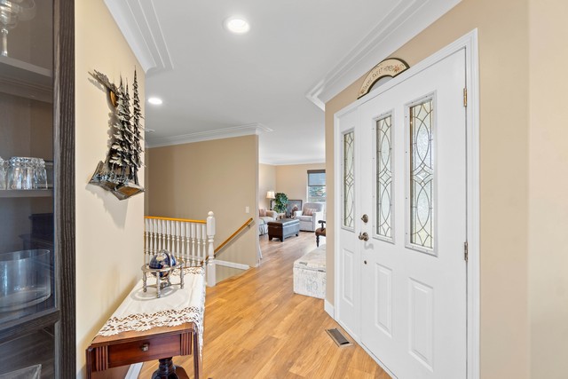 - The welcoming foyer leads to an inviting formal living room with a bow window and a dining room that is perfect for hosting family gatherings