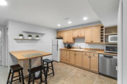 - The 2 bedroom in-law suite down features an oak kitchen with plenty of storage, a newer 4 piece bathroom with soaker tub, a cozy living room with gas fireplace and walk out access to the covered patio and yard