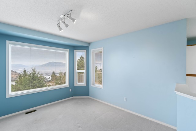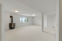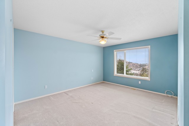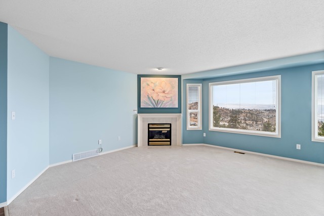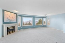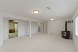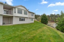 - The basement enjoys a 3rd bedroom, a 4 piece bath and a large rec room with a stunning view and a cozy gas fireplace. It opens to a second small covered patio with level access to a grassy yard area