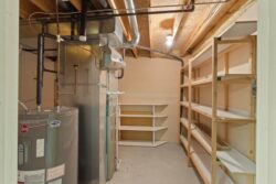 - A dedicated workshop includes lots of added shelves for tools and storage