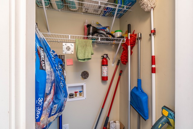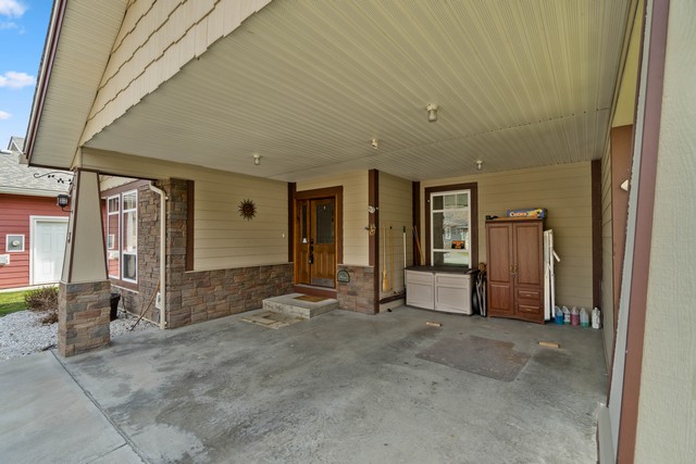 - The main floor laundry that includes washer and dryer is also used as a mud room that accesses the double carport