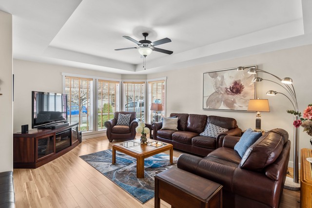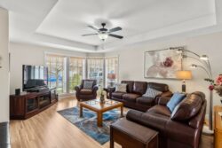 - Featuring a bright open design with hardwood and tile floors and custom window coverings
