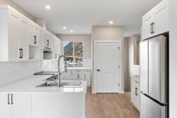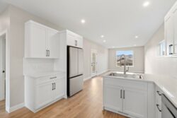- You will love the bright peninsula kitchen with ample cabinets and counter space, plus the convenience of laundry on both levels