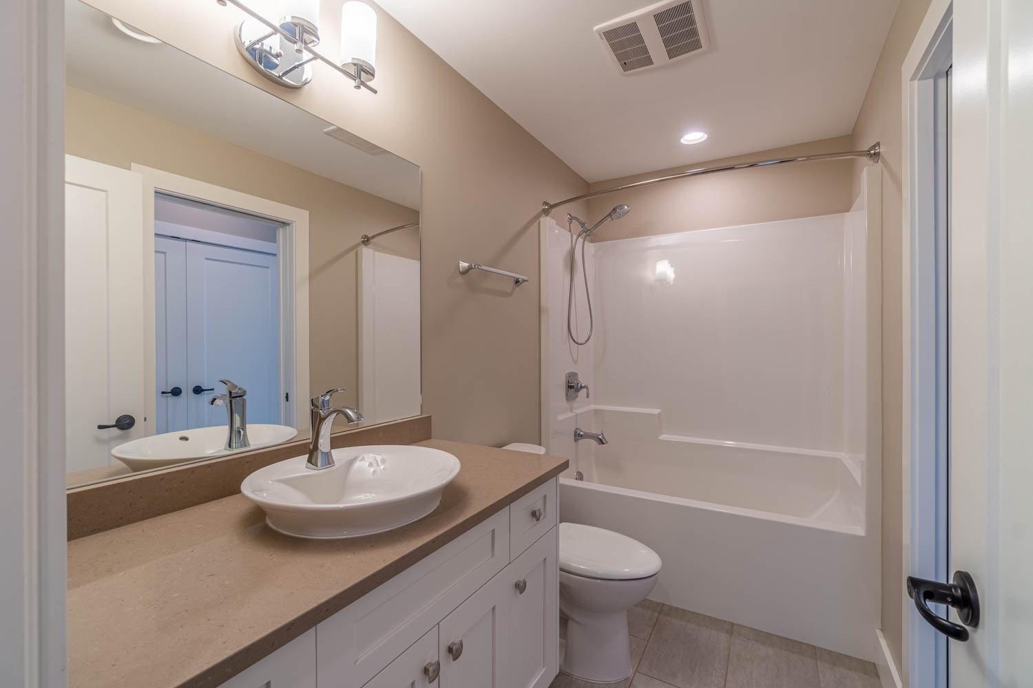 - The 2nd bedroom and 4 piece main bath, also with heated tile, is perfect for guests or family while the den is great for a home office, the ideal setting for working at home