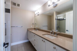 - Featuring a bright and spacious master bedroom with a 4 piece ensuite showcasing a large counter area that includes dual sinks and heated tile floor