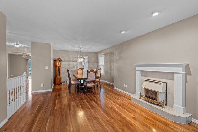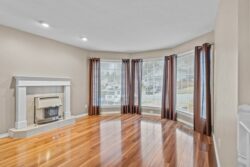- Elegant laminate floors, a cozy fireplace and a charming bay window that fills the living room with plenty of natural light