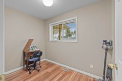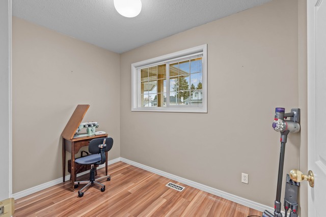 - The main level includes a dedicated home office or potential for main floor laundry and a stylish 4 piece bath with a skylight