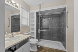 - Finishing off the main level are 2 bedrooms with the generous primary suite featuring a large walk in closet and a wheelchair friendly ensuite with a spacious shower
