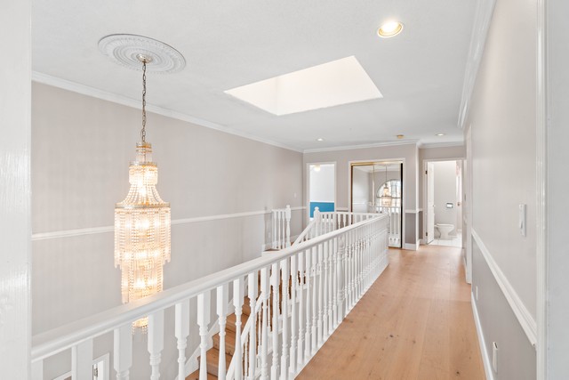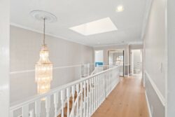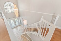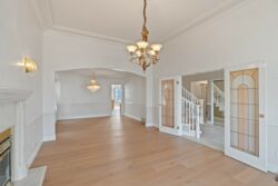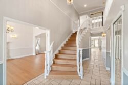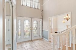 - Step inside to a grand main floor featuring high ceilings, a stunning staircase, oversized living spaces and beautiful engineered hardwood flooring throughout